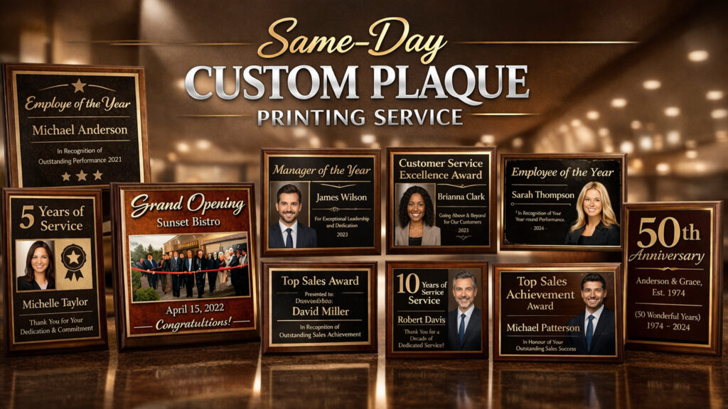 Professional custom plaques for events, promotions, Business awards, and University or School recognition. High-quality, elegant, and made to last.