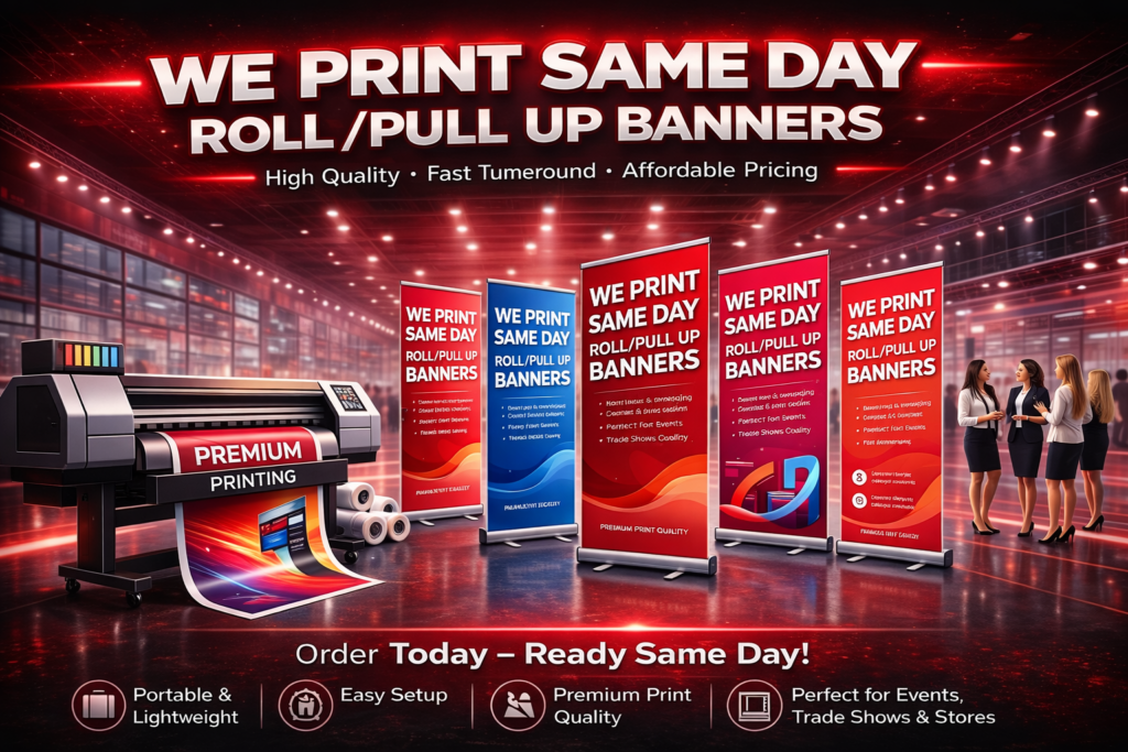 We print indoor/outdoor banners in full color and custom sizes with optional hemming and grommets.