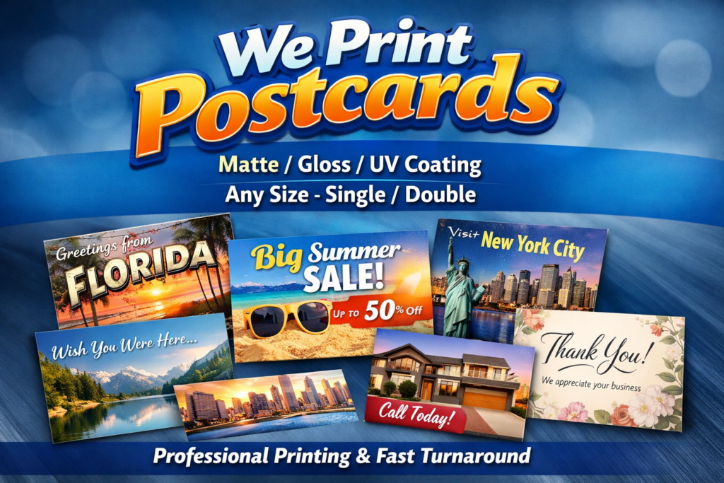 We print Postcards Matte/Gloss/UV Coating Any size, Single/Double Professional Printing & Fast Turnaround